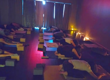 Melt into relaxation with a yoga nidra and sound bath. Let the immersive ambient sounds guide you into a state of calm.